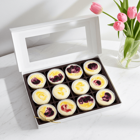 From our bakeshop in Fayetteville, GA to homes across the U.S., our Nationwide Shipping Menu features our most gift-worthy mini cheesecakes — packaged to impress and shipped fresh on Mondays only.